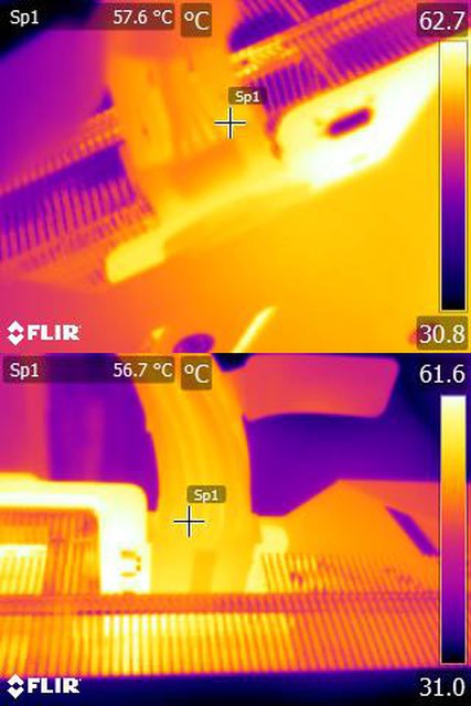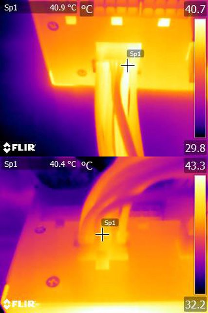 ▼執行FURMARK 30分鐘後電源端插頭的紅外線熱影像圖(附註:安裝位置環境溫度會影響