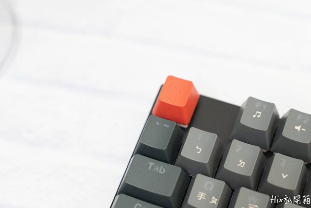 鍵盤配置標準的美式108鍵配置,ESC以及方向鍵以紅色做為強調