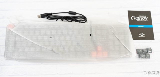 拆開後其實滿簡單的只有鍵盤本體及替換用鍵帽外加一本說明小本本