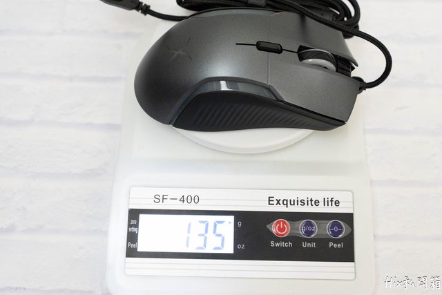 滑鼠含全砝碼的重量為135克,所以簡單數學算一下全部砝碼取出就是135-3*3=126克