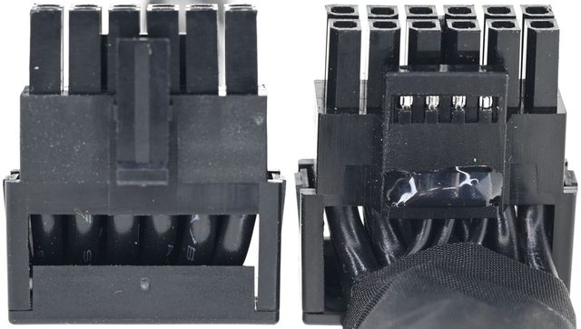 ○12VHPWR模組化線材的電源端接頭具備防退pin保護框,顯示卡端接頭採用直角接頭