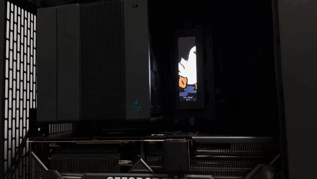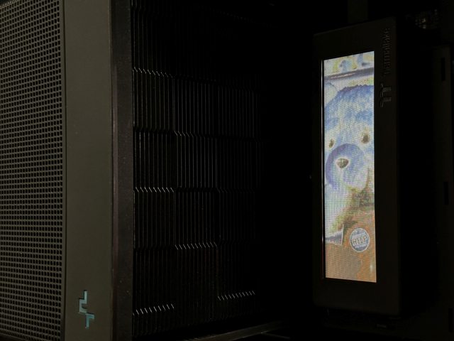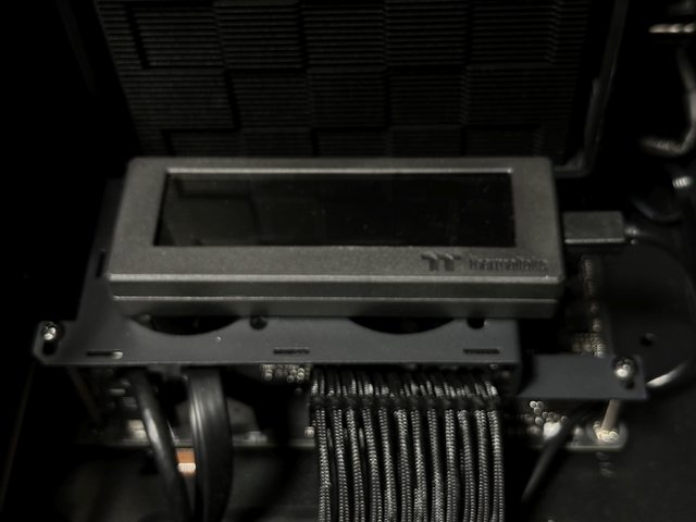 雖然風扇支架面積大於螢幕,外觀上可能稍微差一點,但在黑色機殼內,將深黑的玻璃側