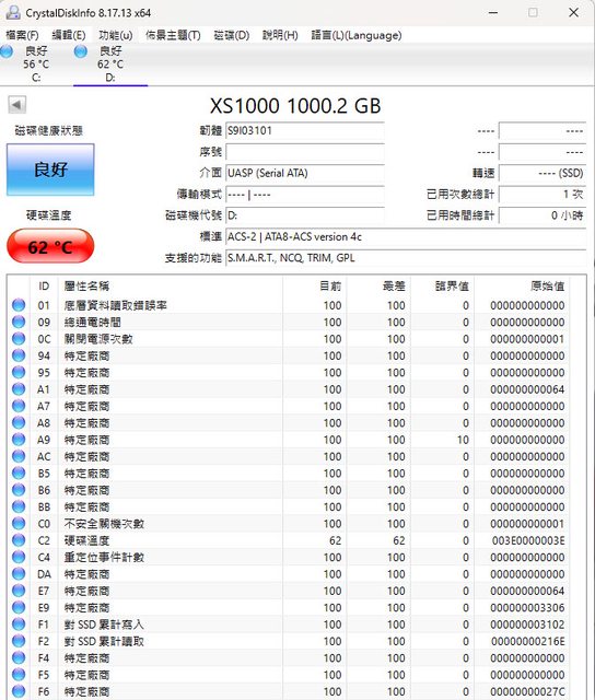 CrystalDiskInfo無法讀取壽命百分比/累積讀寫容量數據,CrystalDiskMark的SEQ1M