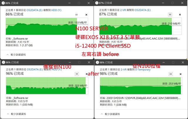 網芳速度可以調整些參數(後附) 可讓smb拉傳檔速度提升不少 尤其是寫入(傳檔到n100)