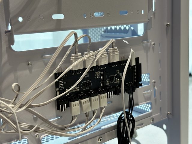 機殼共附4顆白色ARGB 3Pin定速風扇,軸承處有無限鏡面效果,進氣處採用3顆反向扇葉