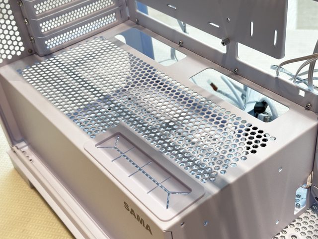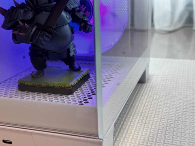 雖然機殼前方有一個斷崖(?)但滿適合拿來放手辦,離顯示卡熱源有一小段距離也有一顆