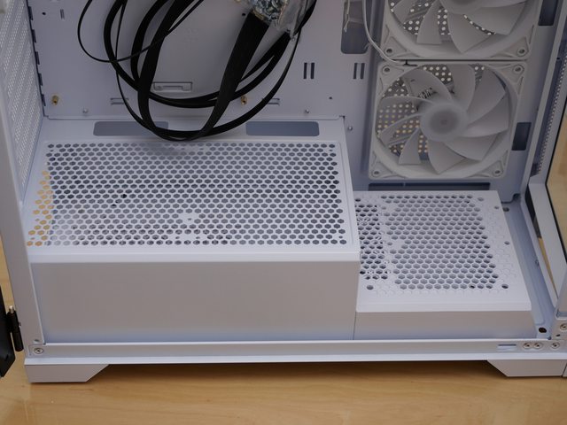 下置PSU設計以及電源倉上方蜂巢開孔,右方可以再加裝一顆風扇
