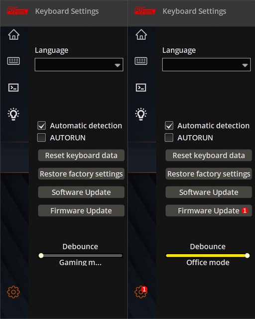 ▼鍵盤韌體更新,若有更新版韌體,應用程式會出現韌體更新通知,不過建議使用正常時