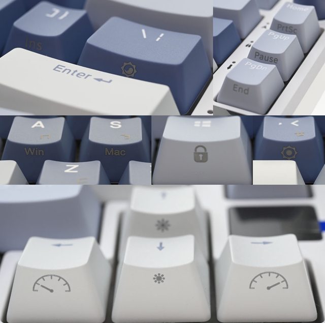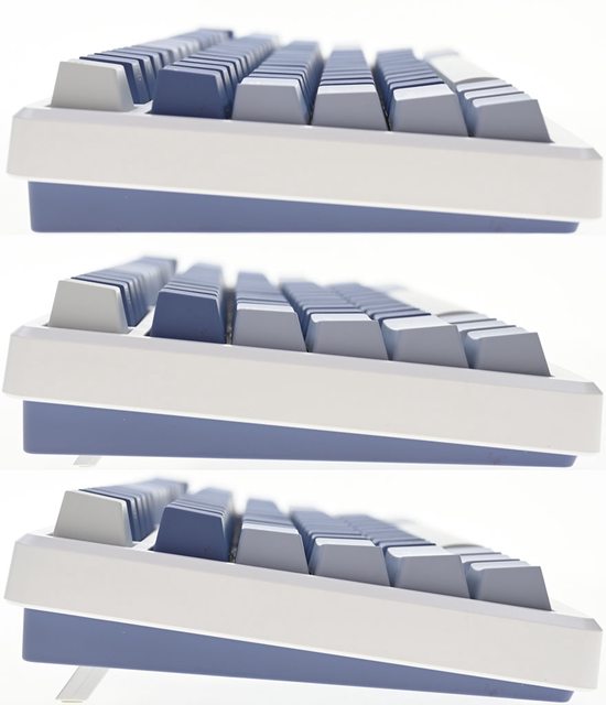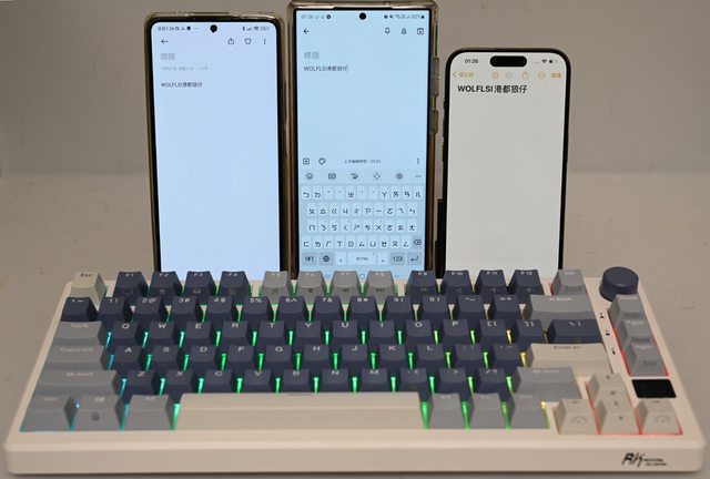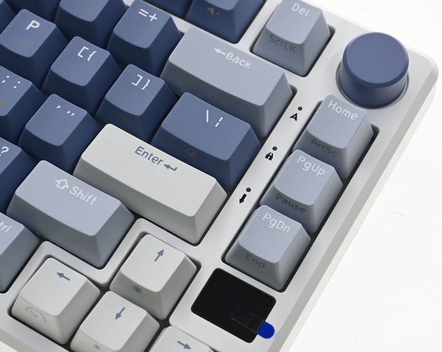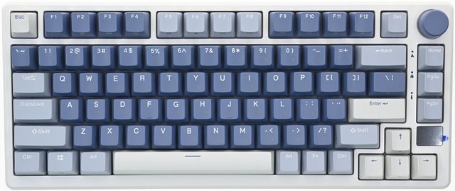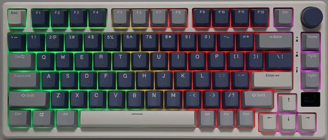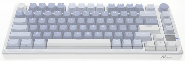 ▼鍵盤採用75%布局配置,鍵帽採用3種配色,右上有旋鈕