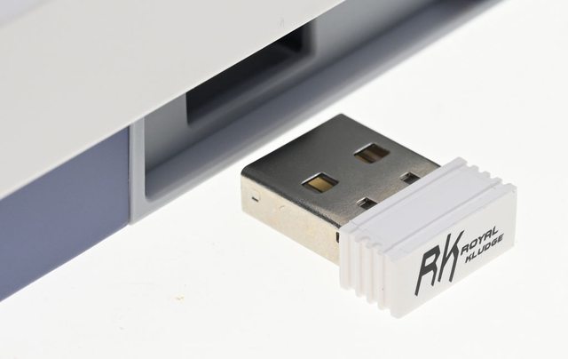▼鍵盤上方左側有2.4G無線接收器收納槽,透過磁吸方式固定,接收器頂端有Royal
