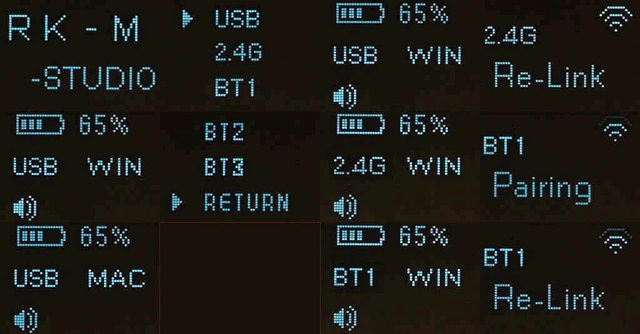 ▼長按旋鈕三秒鐘開啟電源,鍵盤上的OLED小螢幕會先出現"RK-M-STUDIO"字樣,之後顯