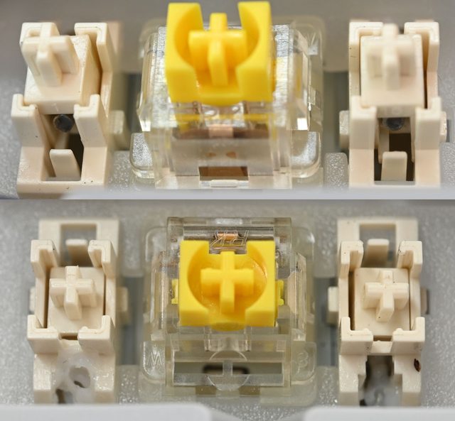 ▼鍵帽取下後可看到底下的RK K黃軸