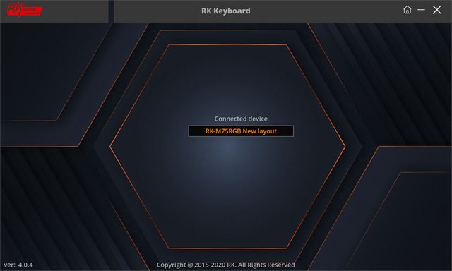 ▼應用程式首頁,會顯示已連接的鍵盤種類"RK-M75RGB New layout",左下顯示應用程式