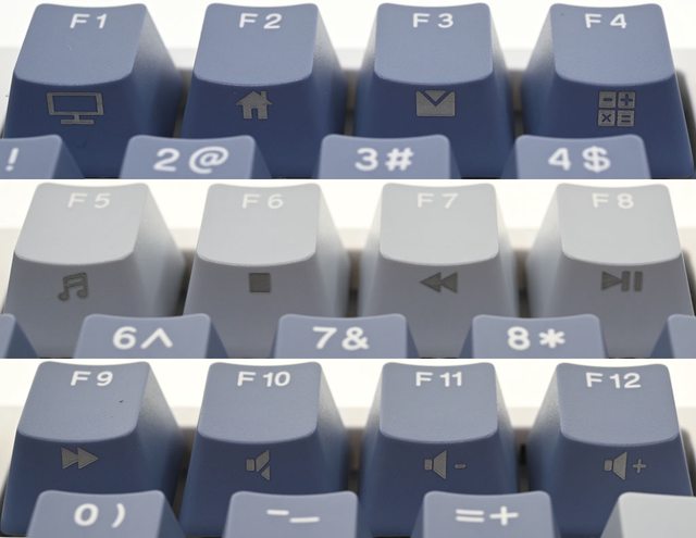 ▼F1到F12的Fn組合按鍵功能印在鍵帽下方側邊