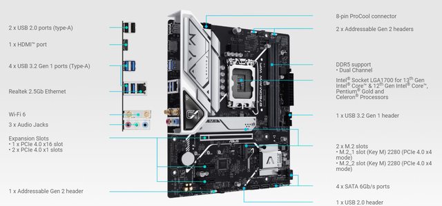 DDR5, Realtek 2.5Gb Ethernet, WiFi 6, HDMI™, SATA 6 Gbps,