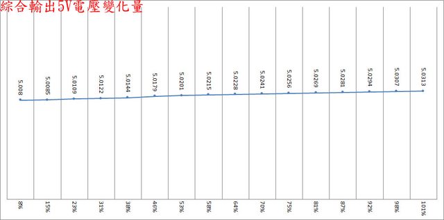 12V/17A時12V漣波振幅增大。於綜合全負載輸出下12V/5V/3.3V各路低頻漣波分別為