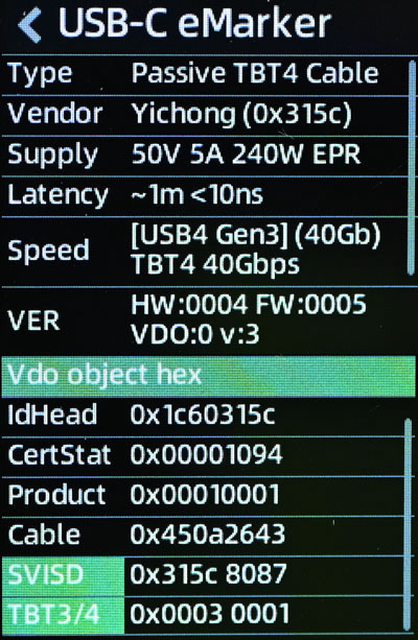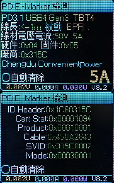 ▼銀色款及黑色款的E-Marker資訊內容,支援USB4 Gen3、Thunderbolt 4 40Gbps資料傳