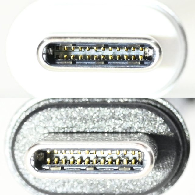 ▼銀色款(上)及黑色款(下)Type-C連接器外殼採一體成型設計,內部針腳如下圖所示