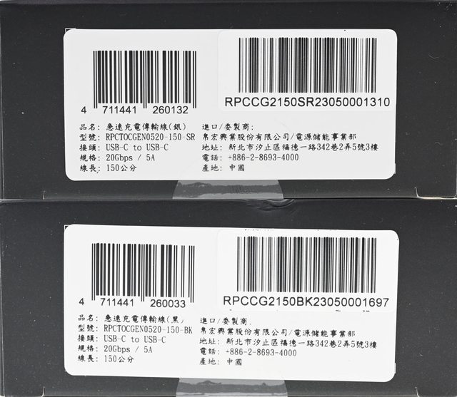 ▼銀色款(上)及黑色款(下)外盒底部有條碼及中文產品資訊標籤