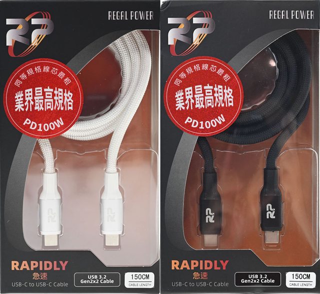 REGAL POWER USB3.2 Gen2x2 100W高速資料傳輸充電線提供最高20Gbps(USB3.2 Gen2x2)