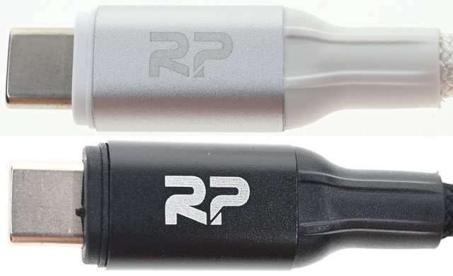 ▼銀色款(上)及黑色款(下)兩端接頭具備一體成形SR護套,接頭其中一面有商標