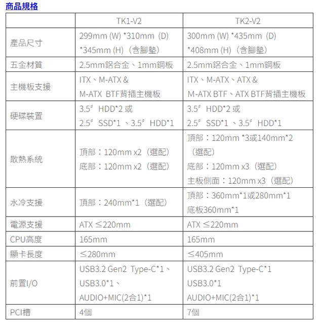 (左為TK2-V2 ATX白)(右為TK1-V2 MATX黑)