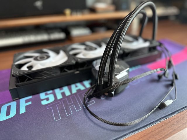 接著是水冷散熱器本體,3顆SickleFlow Edge 12cm風扇已經預裝在冷排上且有稍微將線