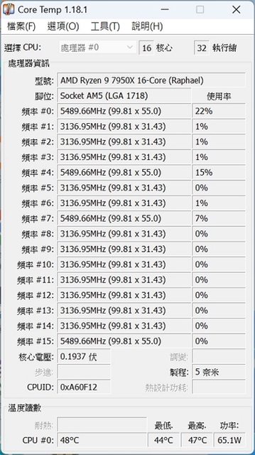 一般待機 65W 溫度 44 左右