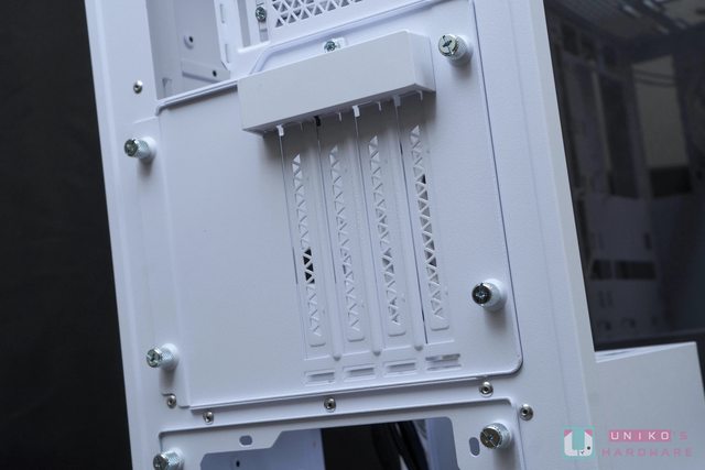 要使用 PCIe 4.0 延長線時,只需將機殼後方原本水平支撐架座的手轉螺絲卸除,將垂直安