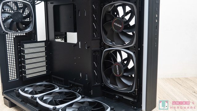 機殼內預裝的 6 顆風扇若沒有妥當的規畫安排,整線會是很大的問題,好在內建支援 10
