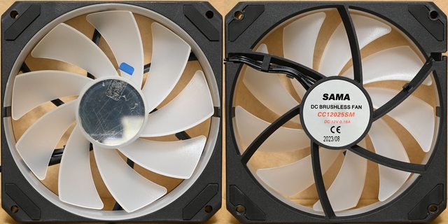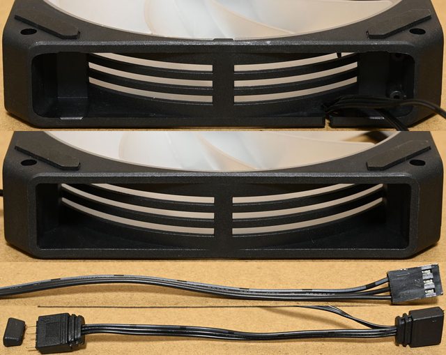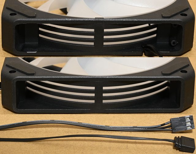 ▼ARGB發光120mm風扇,9葉片乳白色扇葉軸心處有無限反射鏡面裝飾,黑色外框有乳白色