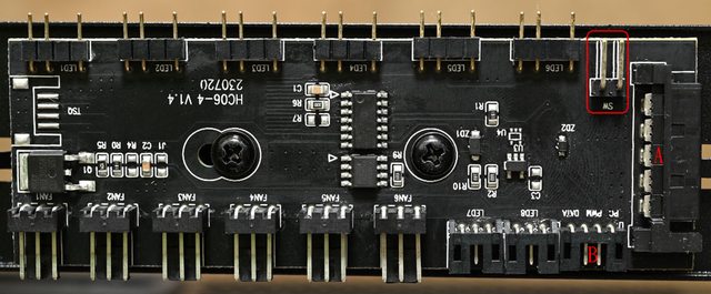 ○燈光風扇控制板提供6個3pin ARGB插針及6個風扇3pin插針,可使用燈光按鈕切換內建