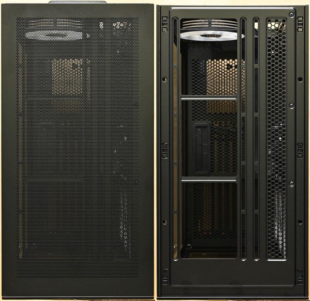 ●機殼頂部網孔板、左/右側板、前方面板都採用免螺絲快拆卡榫固定設計,拆裝無需使