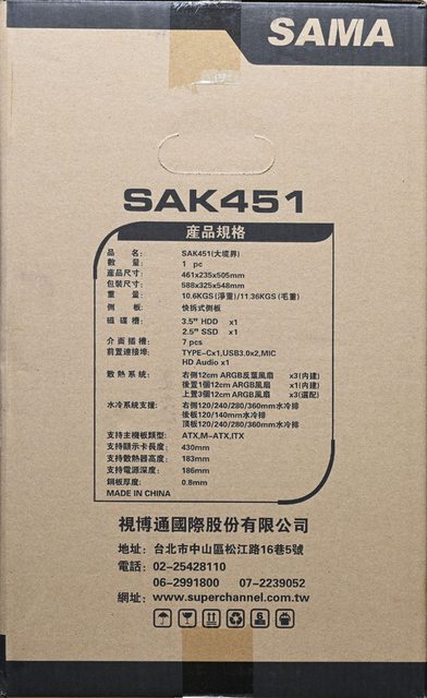 風扇及1個ARGB發光120mm風扇,右側前方及頂部可裝280/360mm一體式水冷散熱排,底部