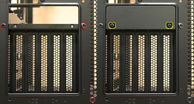 ▼鎖上3個固定螺絲(左圖紅色框),蓋上直立擴充槽蓋板並鎖上直立擴充槽蓋板固定螺絲(