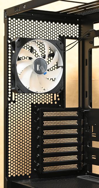 後方風扇安裝空間:1個120/140mm(預裝1個ARGB發光120mm風扇)