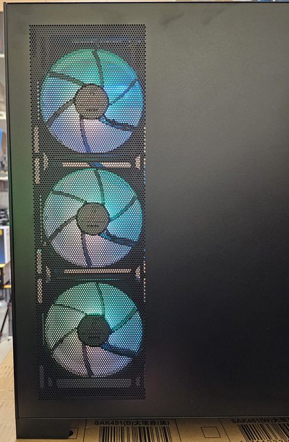 右側前方風扇安裝空間:3個120/140mm(預裝3個ARGB發光120mm反向風扇)