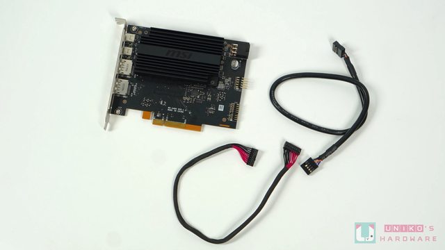 MSI USB4 PD100 PCI-E 擴充卡,連同 2 條線材,是 Z790 CARBON MAX WIFI 的秘密武器,