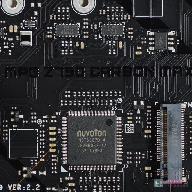 NUVOTON NCT6687D-M SUPER I/O 晶片,管理多項電壓、風扇、溫度等即時的資訊監測。