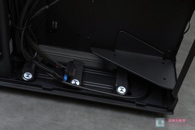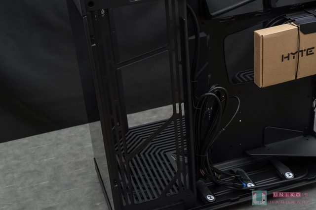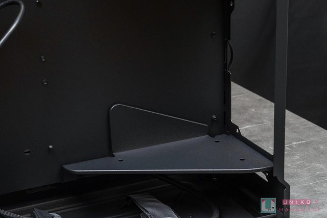 至於機殼底部的部分則是有兩條類似 L 型的底做支撐,中央有提供給下方 360 mm 散熱空