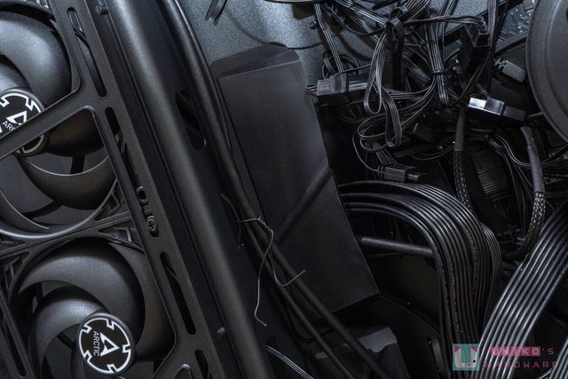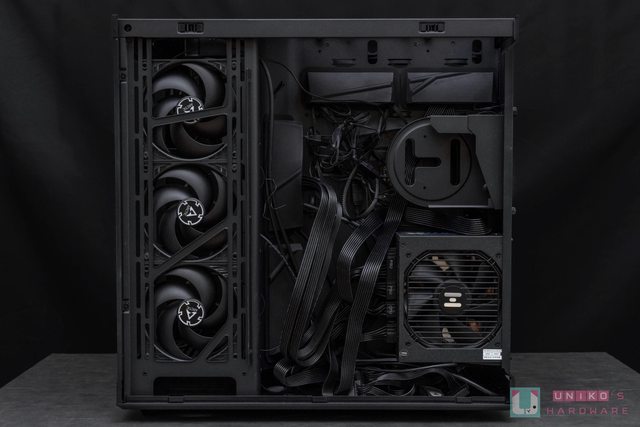 其內部整線空間部分,小編在側面安裝三顆進氣風扇,所有線材就算不特別整理,也是能夠