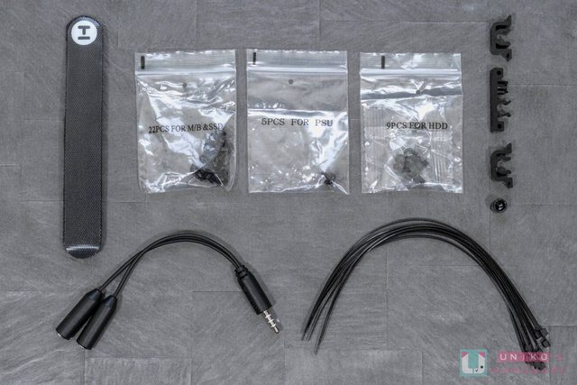 至於隨附的螺絲和配件收納盒當中,除了基本的裝機用螺絲放置在同一束口袋以外,其他還
