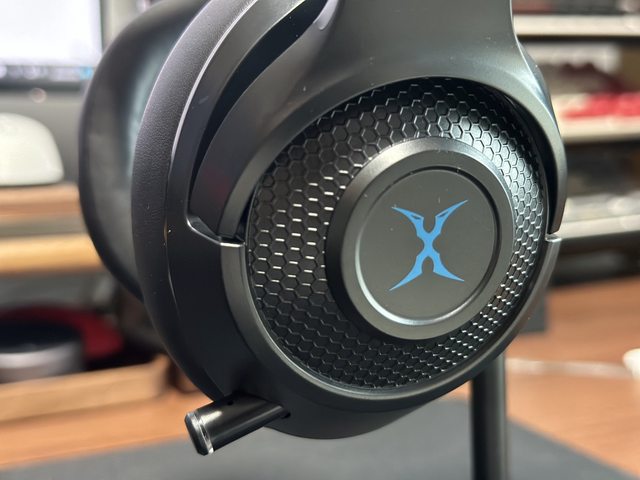 耳罩上有FOXXRAY的X LOGO圖案,周圍做成鐵網質感開孔的樣貌,但只有質感沒有實際開