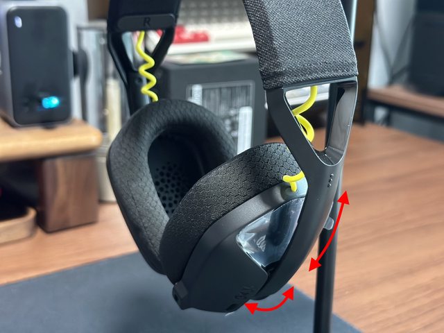 孔。麥克風則採用可收納至耳罩內的拉伸設計。