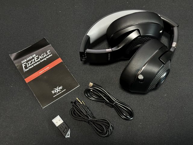 內容物包括說明書、TYPE-C傳輸線、3.5mm編織線及USB接收器。雖然嘯鷹響狐可以折疊成