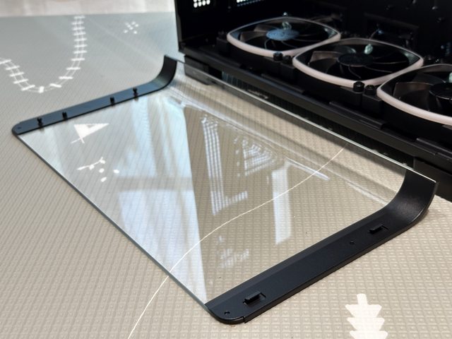 KING 95 Pro的特色之一是曲面玻璃前面板能改裝成通風面板,並藉由調整側邊風扇架的