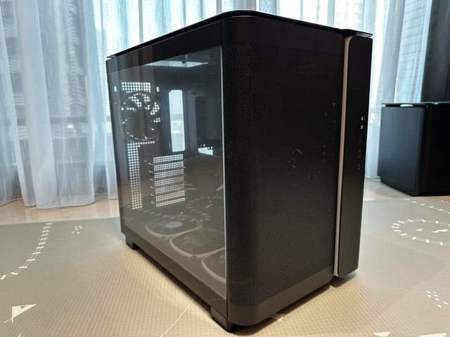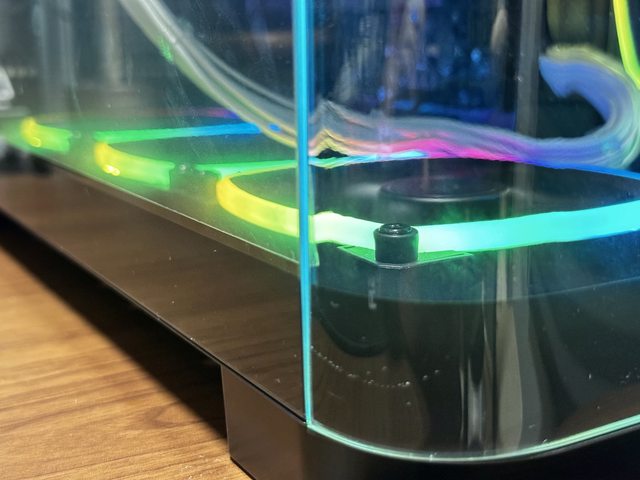 接著裝上玻璃面板,跟個人之前測過的某XL海景機殼一樣,可能是機殼燈條的燈效藉由玻