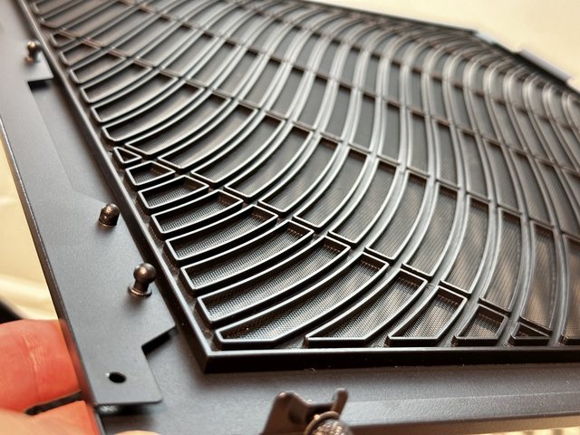 右側板及上蓋內部都有設置尼龍濾網,以額外塑膠框黏貼住的方式固定,濾網無法拆除是