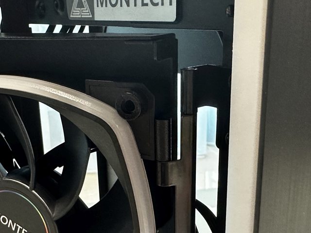 這個轉軸一定要調整風扇架才能固定在前方,個人也覺得這能稍微移動風扇架位置的轉軸
