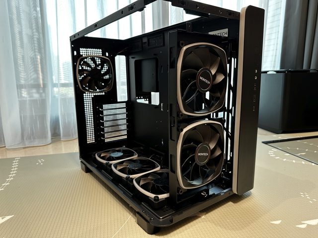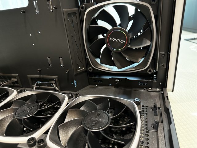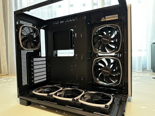 接著是機殼內部結構,KING 95 Pro 內部預裝了6顆ARGB風扇,包括底部3顆12cm反向風扇